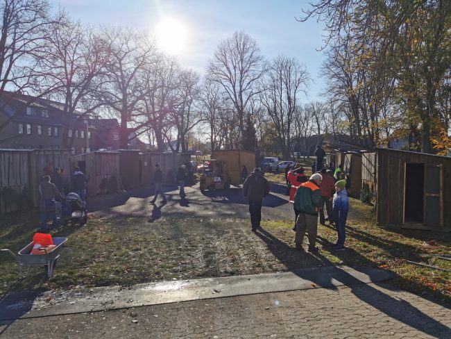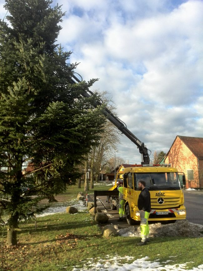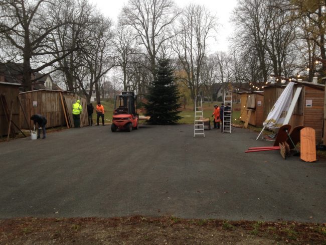 Kleiner Aufbau mit Aufstellung der Bäume, Anbringen des Tannengrüns, Verteilung des Schredderguts auf dem Platz, Lichterketteninstallation u.v.m.